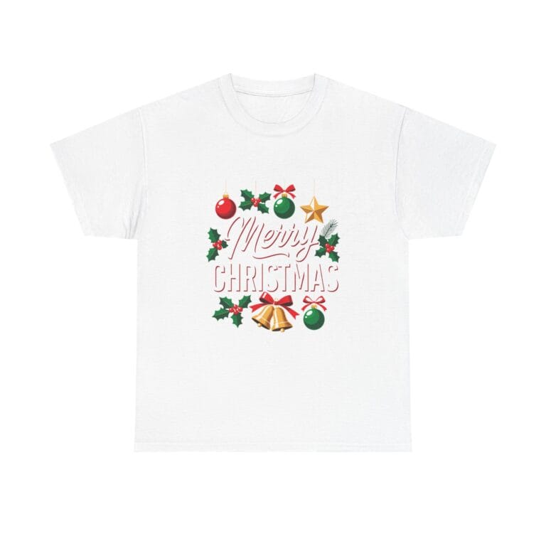 Merry Christmas Wreath Tee — Festive Holiday Bells & Baubles T-Shirt