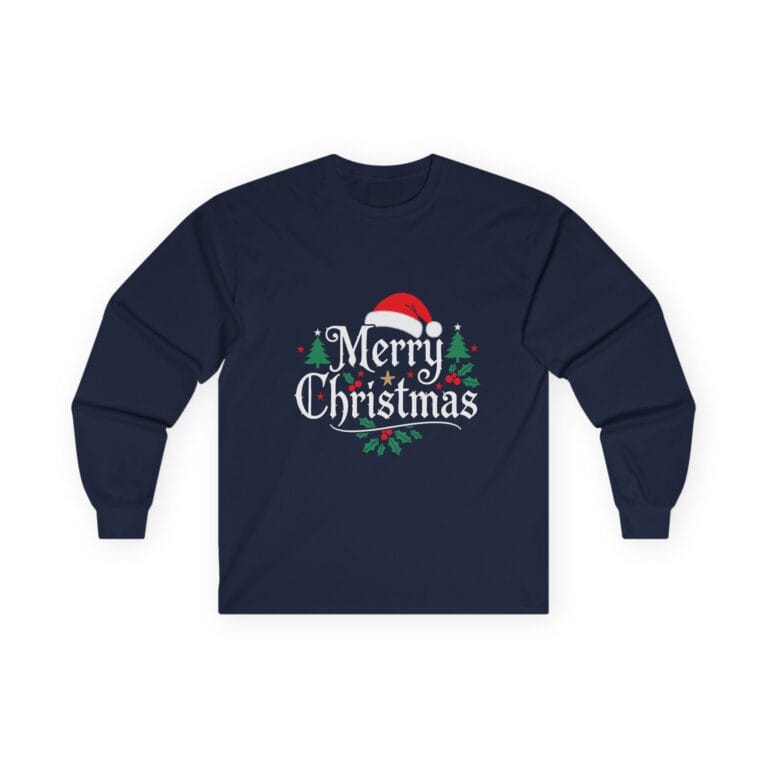 Merry Christmas Long Sleeve Tee — Festive Santa Hat Holiday Shirt